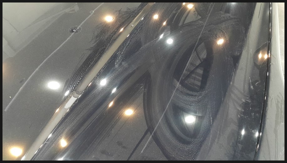 중고 구입 후 차체의 새똥을 닦는다고 물티슈로 여기저기 닦다가 차체에 얼룩이 남았습니다.