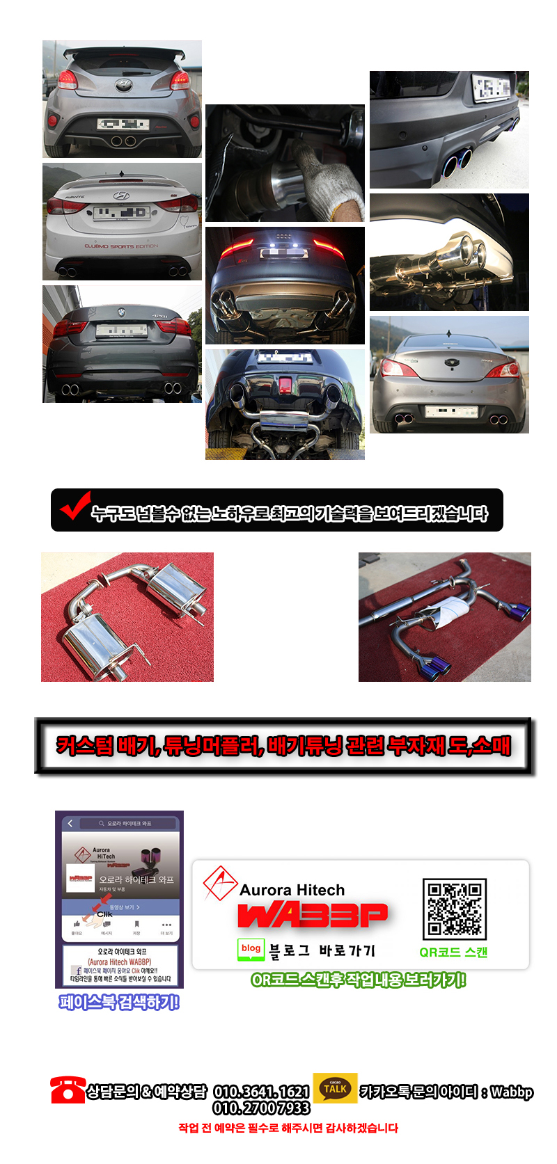 와프 가변 머플러, 중고음 머플러, 다운 파이프 모두